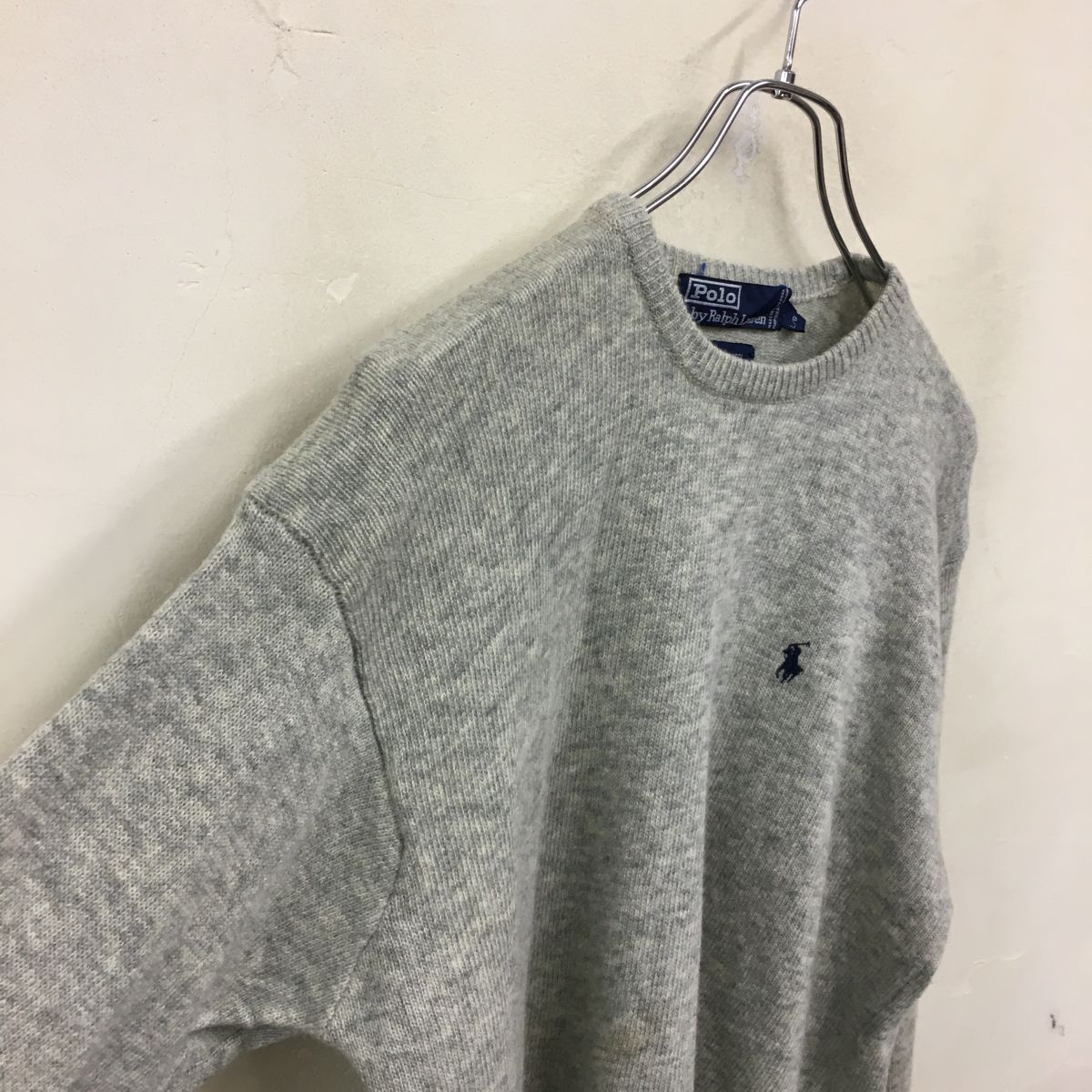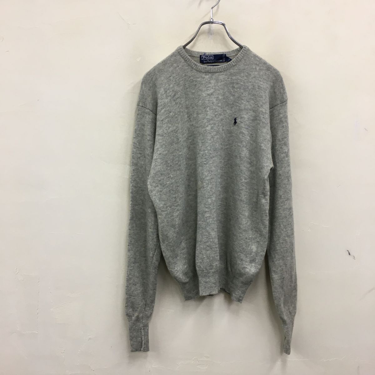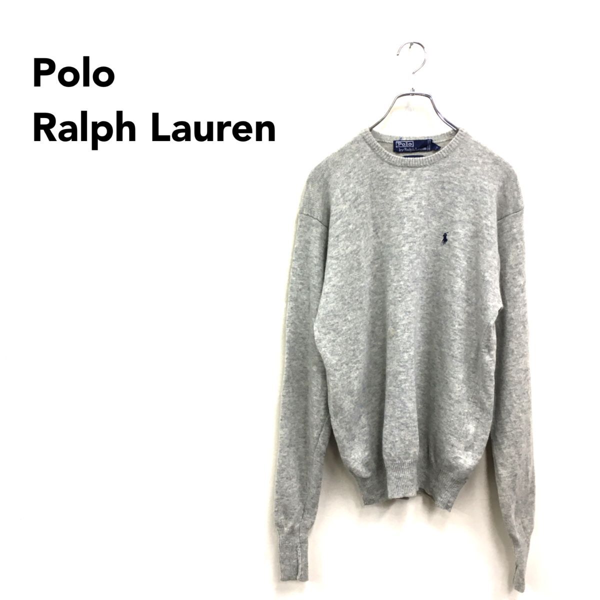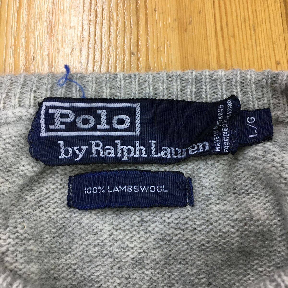 2D1049-G-N◆ Polo Ralph Lauren ポロラルフローレン ラムウールセーター ミドルゲージニット リブクルーネック 無地 ◆ sizeL グレー