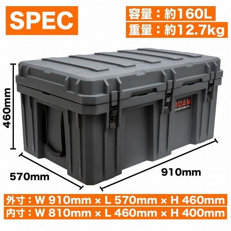 | 商品説明 | "■特徴 ROAM 160リットル ラギットケースはヘビーデューティーな収納ケースで、大きめのキャンプ用品、ストーブ、スリーピングギア、またはリカバリーギアの収納に理想的なケースです。 4Runner/SUVのトランクやトラックの後部座席に最適です。 このプレミアムケースは、耐久性のあるLLDPEシェル、ナイロンロープハンドル、スチールロック式ラッチ、防塵・防水ガスケットシールが特徴で、どんな地形でもギアを常に保護します。 インターロッキング設計により、持ち運ぶギアの量に関係なく、スタッキングやペアリングが簡単にできます。 ■仕様 カラー:デザートタン(NEW LOGO) 容量:160リットル 外寸:910mm x 570mm x 460mm 内寸:810mm x 460mm x 400mm 重量:12.7kg 開口位置:長辺側 素材:LDPE 付属品:ダンパー | |