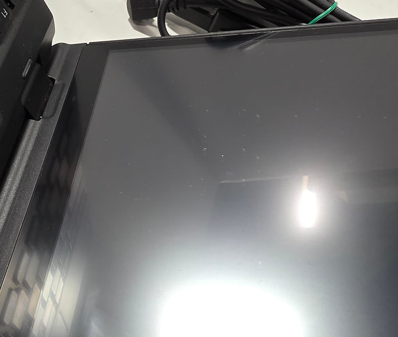 写真は商品現物を撮影したものです。写真にてご判断ください。 タッチパッドはやや摩耗しています。底面はシール跡があるほか、ゴム足が3個欠損してます。液晶面は点状のキズが複数あります(写真参照) そのほか中古品につき、ある程度の小傷、汚れ等についてはご了承ください。 クリーニングは簡易的に行っております。 |
