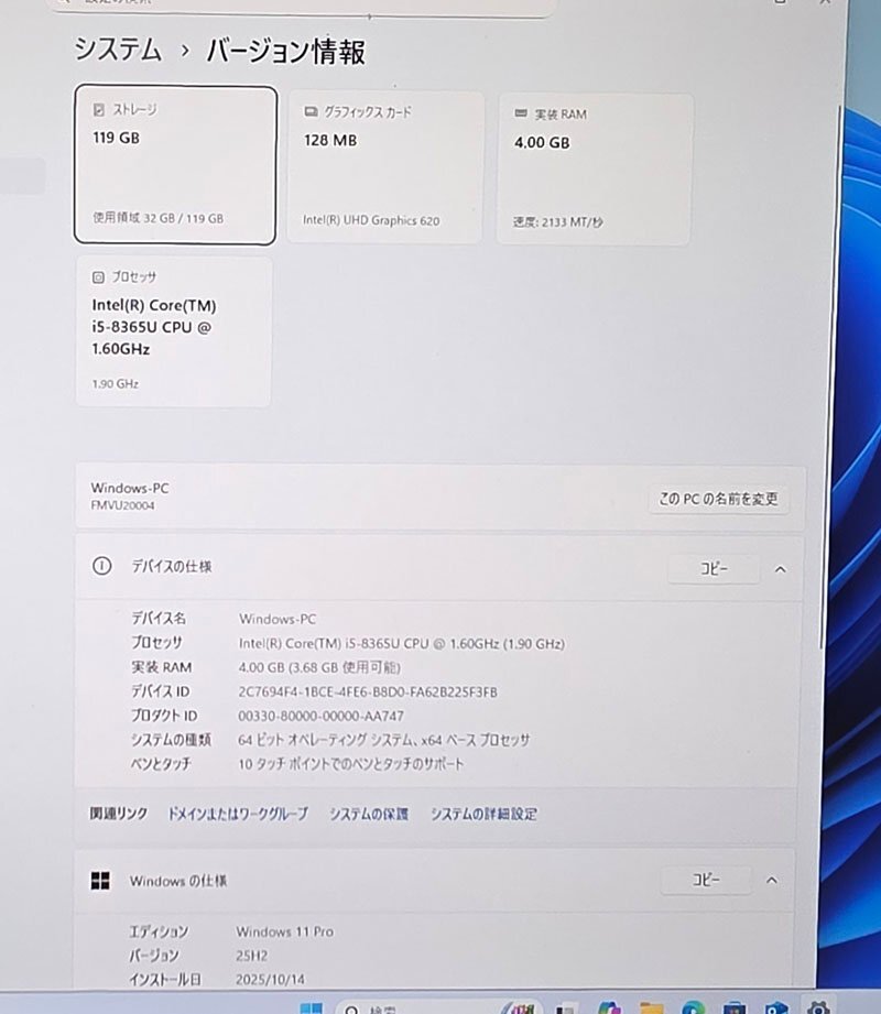 | 搭載OS | Windows11pro 64bit(クリーンインストール) |