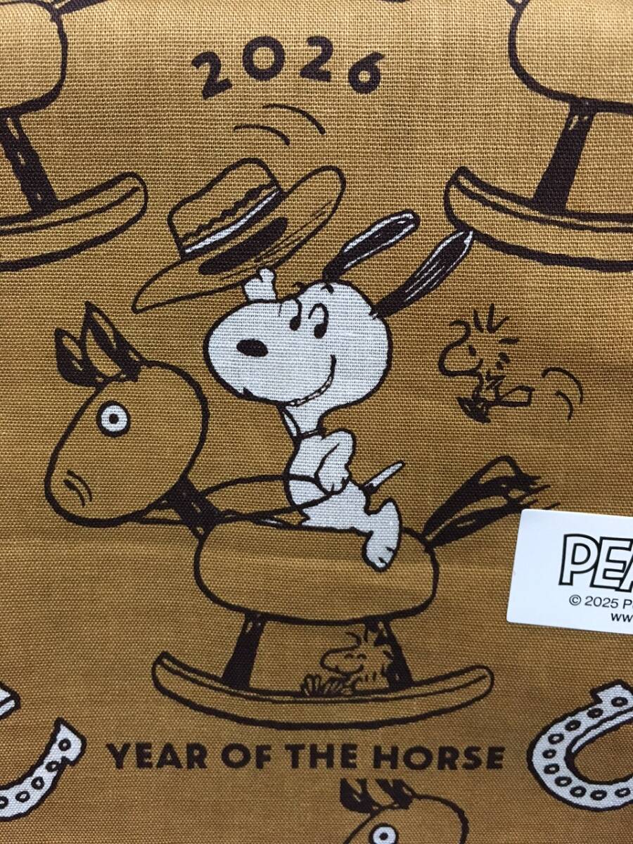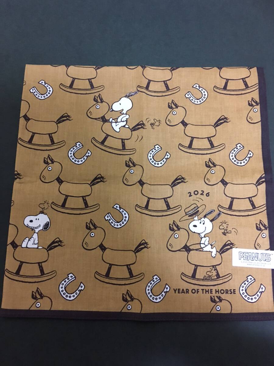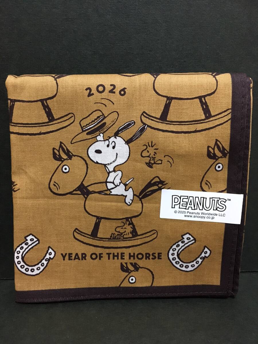 PEANUTS★スヌーピー YEAR OF THE HORSE 2026 干支 茶色のバンダナハンカチです☆彡