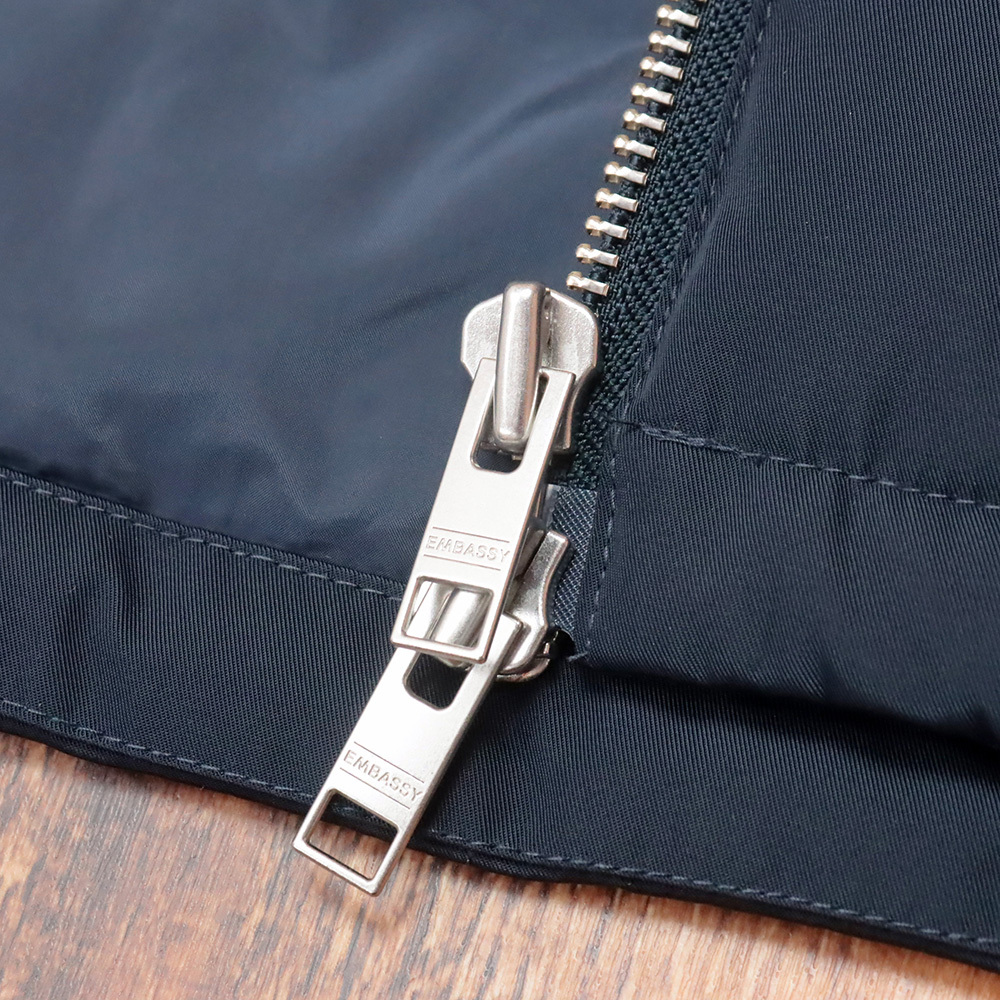 ダブルジップ、ジップポケット、中綿入りの総裏地