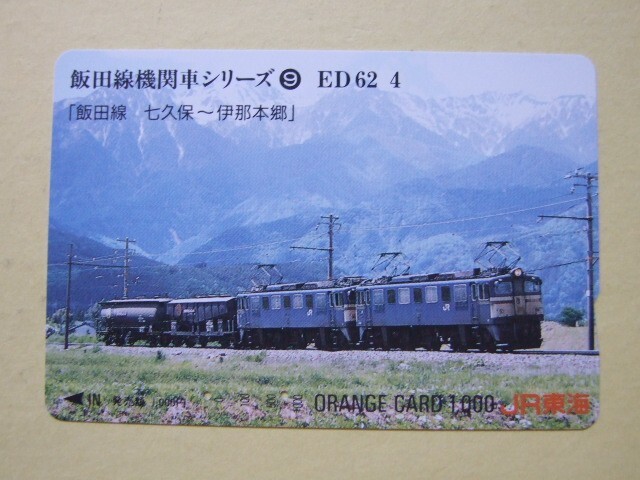 ◇オレンジカード 使用済 多穴券◇JR東海 『飯田線機関車シリーズ 9 ED62 4 「飯田線 七久保ー伊那本郷」』USED品 109507