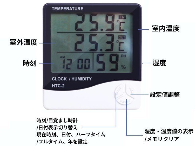 | デジタル温湿度計 温度湿度時刻表示 置き掛け兼用 室内室外用 (切り替えタイプ) |