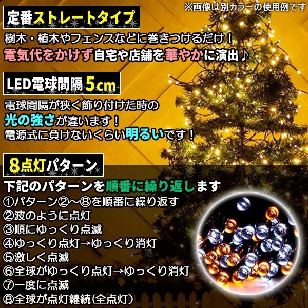 ソーラー イルミネーション 屋外 クリスマス ストレート 屋外用 イルミネーションライト 200球 ゴールド×ホワイト