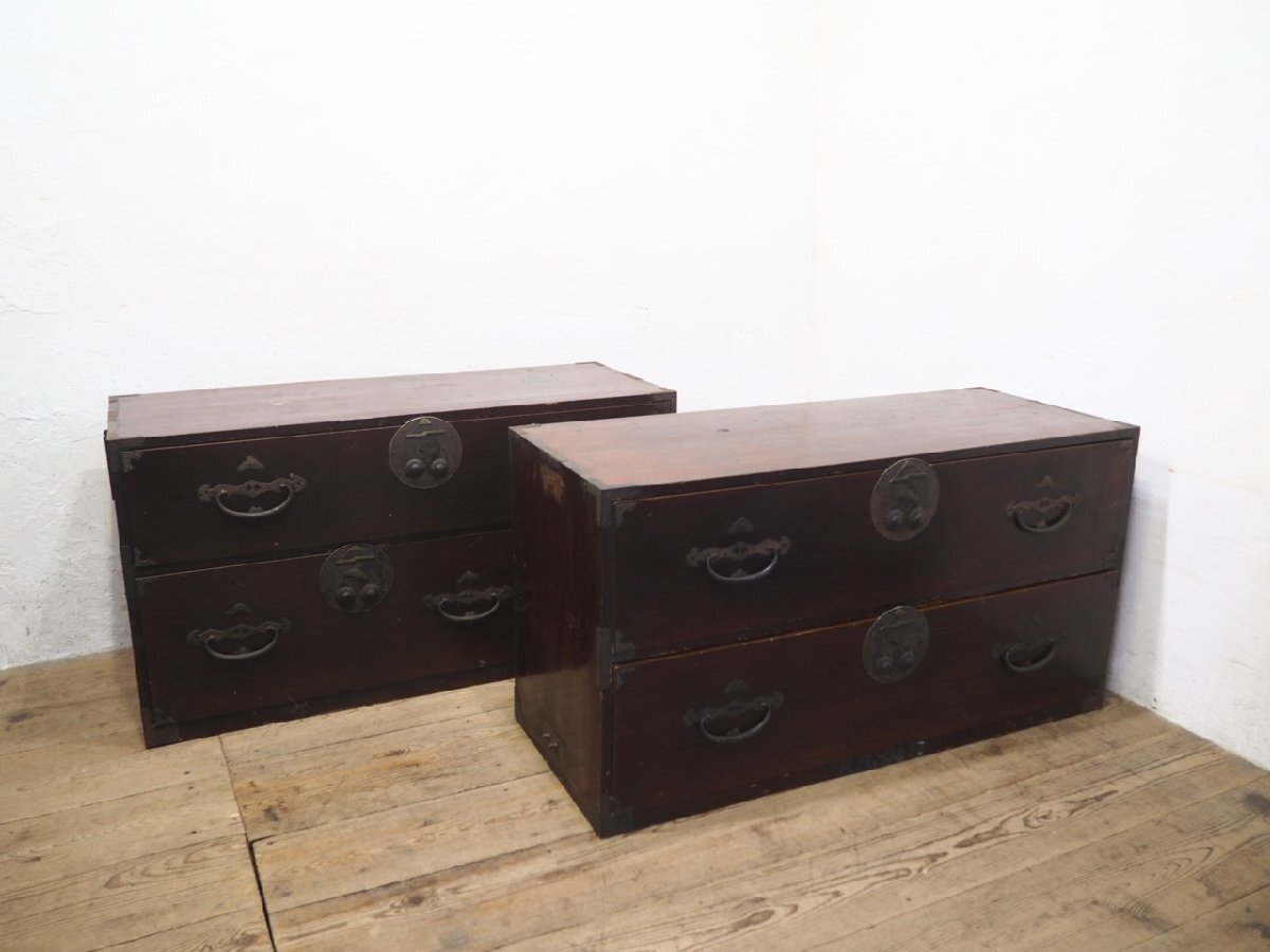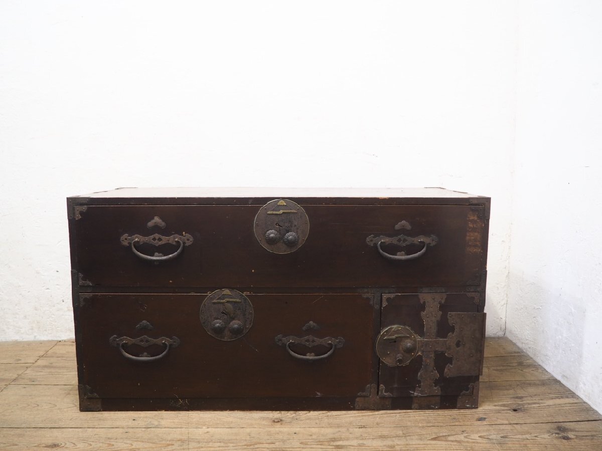 タG0239◆②H61cm×W113cm◆アンティーク◆前桐の味わいのある和箪笥◆飾り棚 衣装箪笥 キリタンス 展示台 ローボード 和室 レトロN松