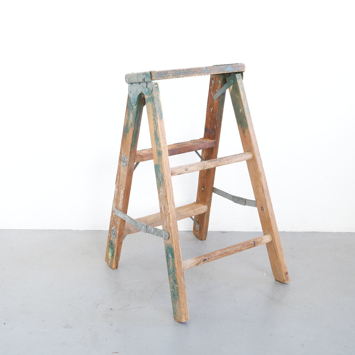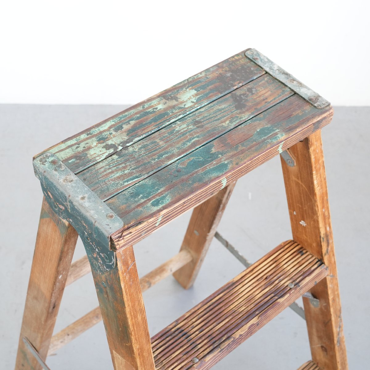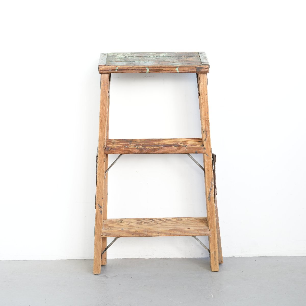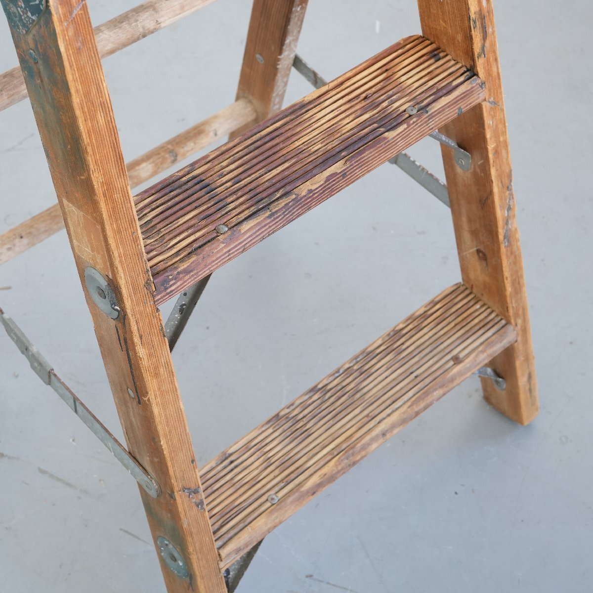 | コンディション condition | キズや小さなカケ、木の削れ、木割れ、きしみ、塗料の跡、板の反り、落ちない汚れ、多少のぐらつきなど経年による劣化があります。 ステップを踏み台にしても大丈夫ですが、最上段目へ登ることはお控え下さい。 万が一の場合は保証しかねます。 作業などでの使用は控え、ディスプレイ品としてお考え下さい。 詳細は画像をご覧ください。 |