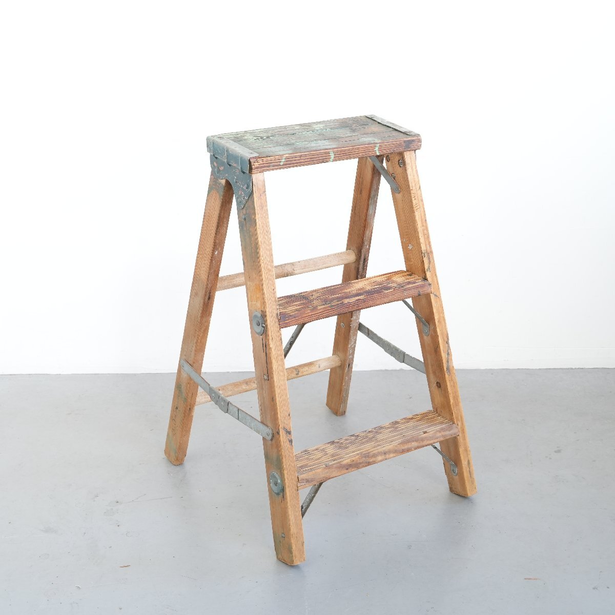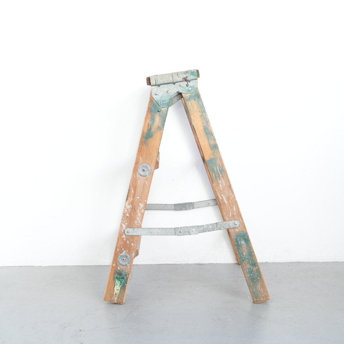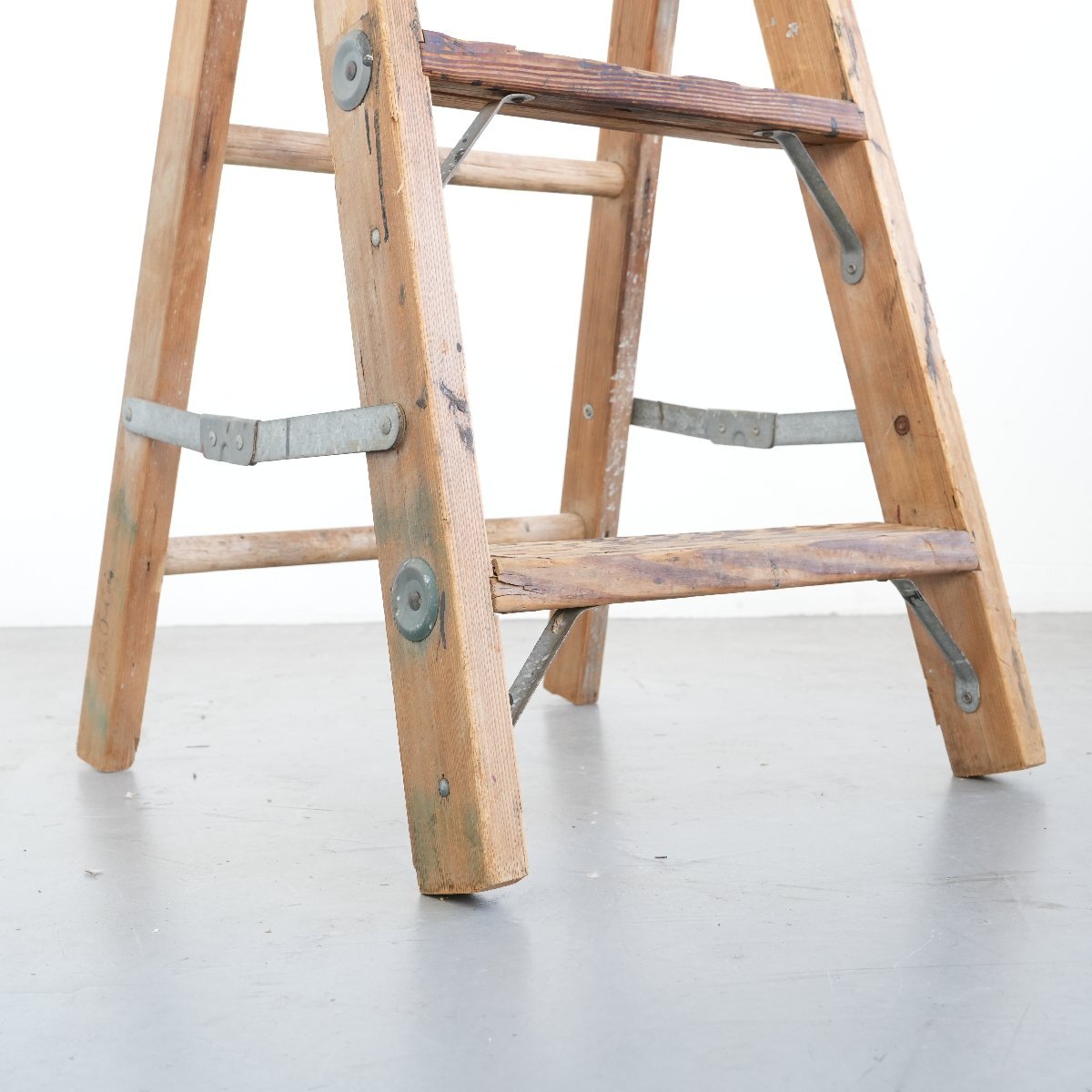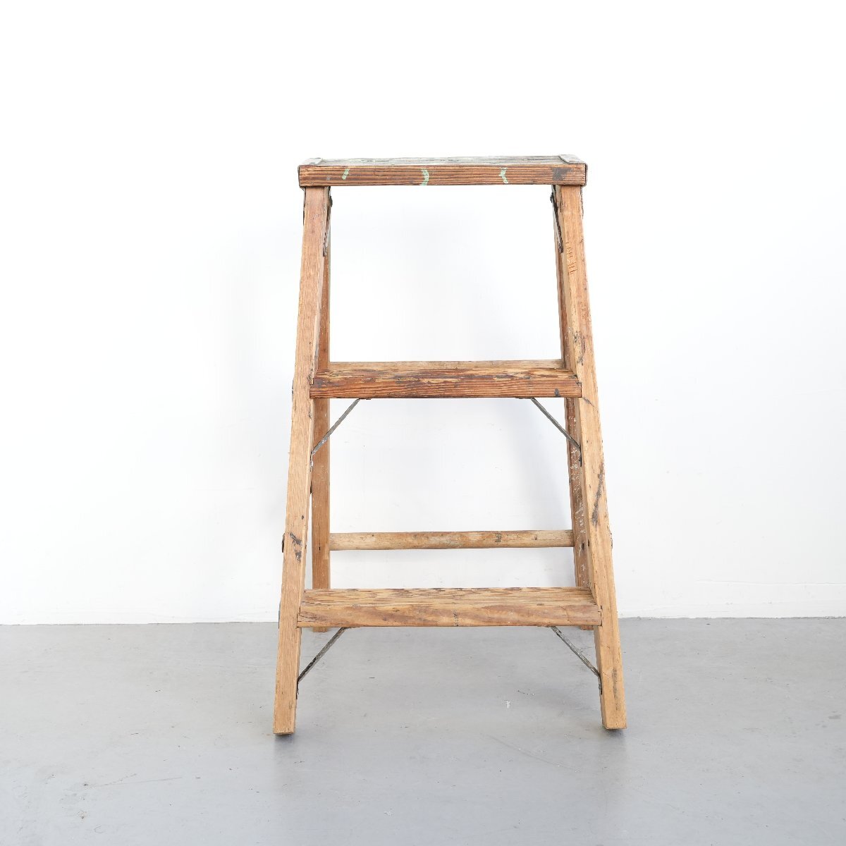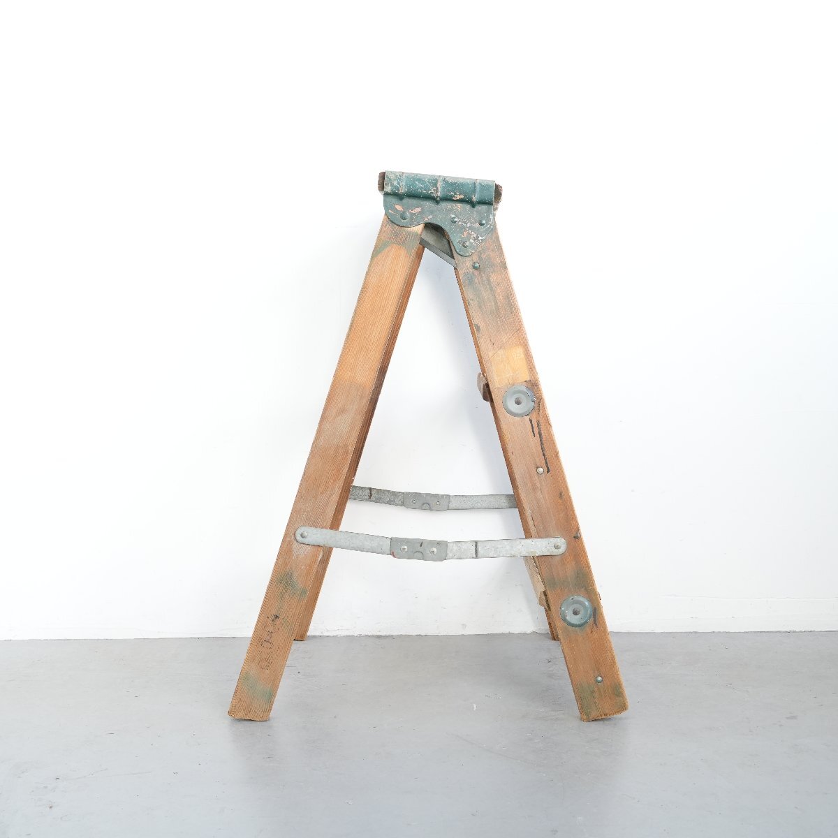 | コンディション condition | キズや小さなカケ、木の削れ、木割れ、きしみ、塗料の跡、板の反り、落ちない汚れ、多少のぐらつきなど経年による劣化があります。 ステップを踏み台にしても大丈夫ですが、最上段目へ登ることはお控え下さい。 万が一の場合は保証しかねます。 作業などでの使用は控え、ディスプレイ品としてお考え下さい。 詳細は画像をご覧ください。 |