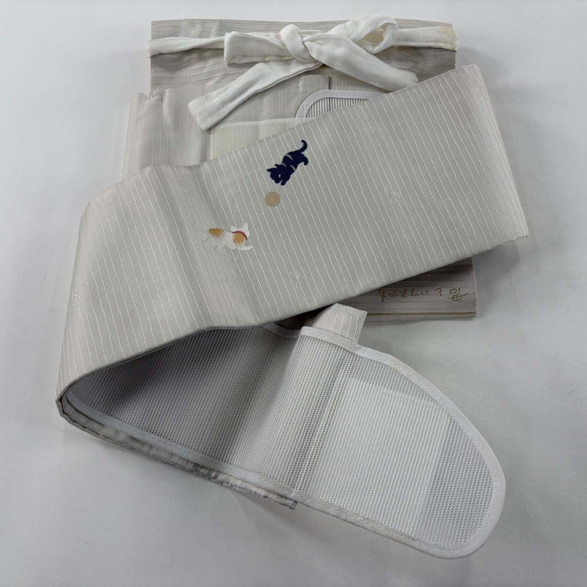 | 付け帯 名品 作り帯 猫 窓 刺繍 クリーム 正絹 【中古】 |