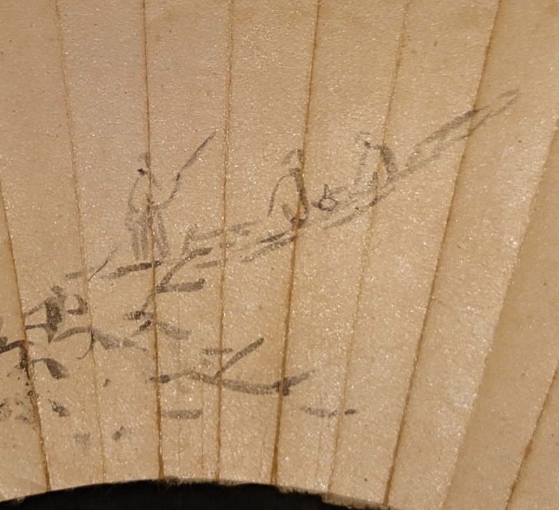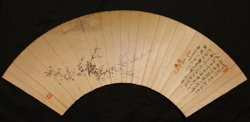 中国美術 作者不詳「月夜人物小舟図」水墨 扇面 落款有 水墨画 扇子 山水図 古画 古玩 まくり