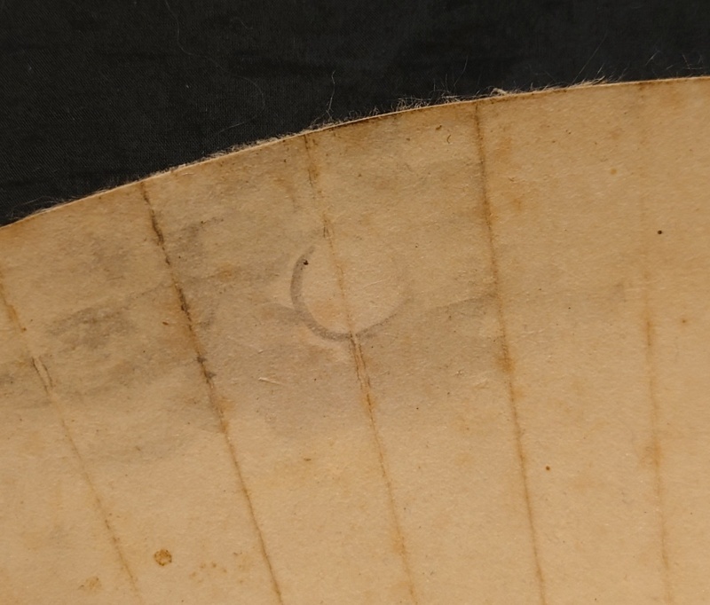 ■□中国美術 作者不詳「月夜人物小舟図」水墨 扇面 落款有 水墨画 扇子 山水図 古画 古玩 まくり□■