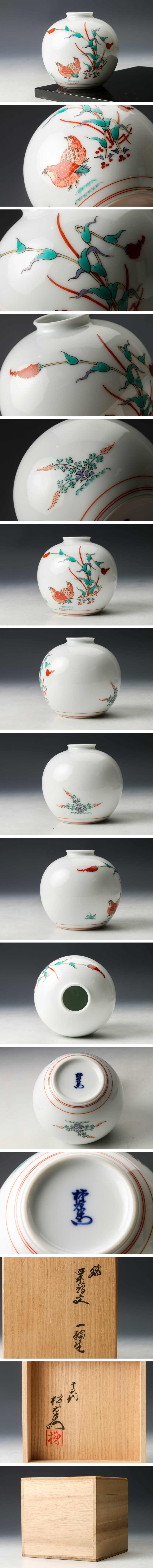 【佳香】十四代 酒井田柿右衛門 錦粟鶉文一輪生 共箱 本物保証