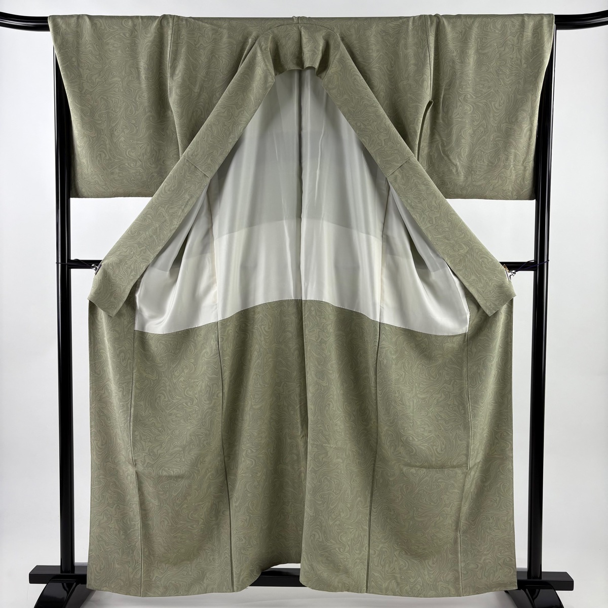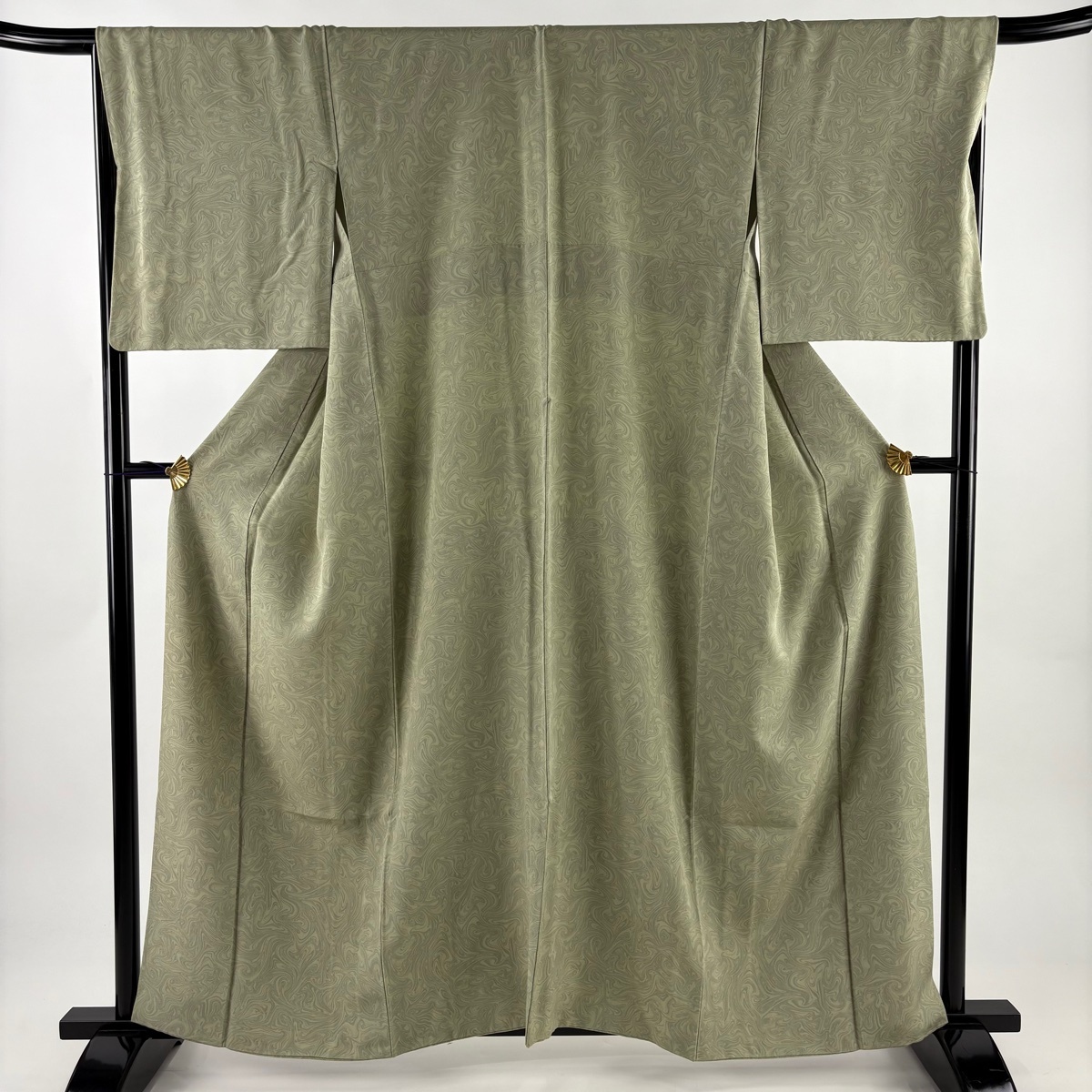 | 小紋 名品 鈴乃屋 墨流し 灰緑 袷 身丈160 裄丈68 L 正絹 【中古】 |