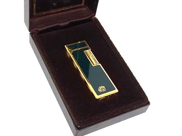 ■美品■ Colibri コリブリ 高級ライター ローラーガスライター 喫煙グッズ 喫煙具 メンズ レディース グリーン系×ゴールド系 DL1812