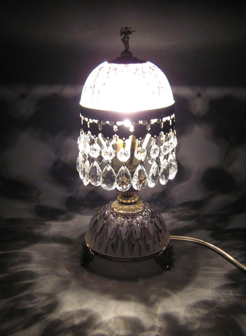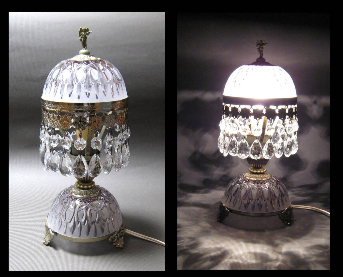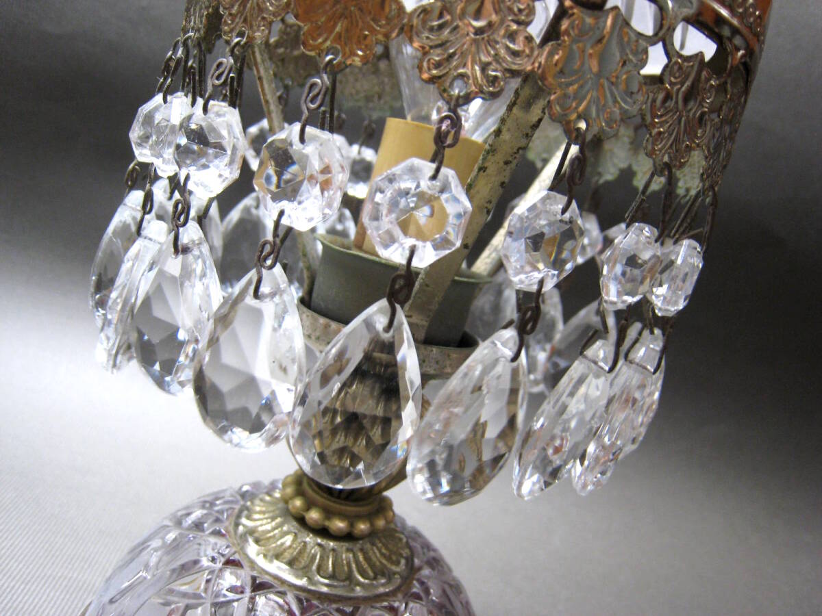 硝子 ライト フランス製 アンティーク 卓上ライト 29cm シャンデリア風 ガラス 彫金 照明器具 インテリア