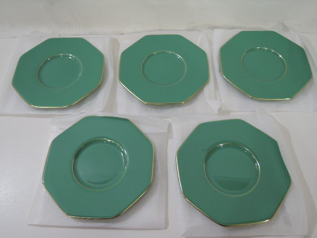 | 香蘭社 八角形茶托セット 5客 グリーン 茶托 G410-RC 経年保管品/未使用品 | ||||