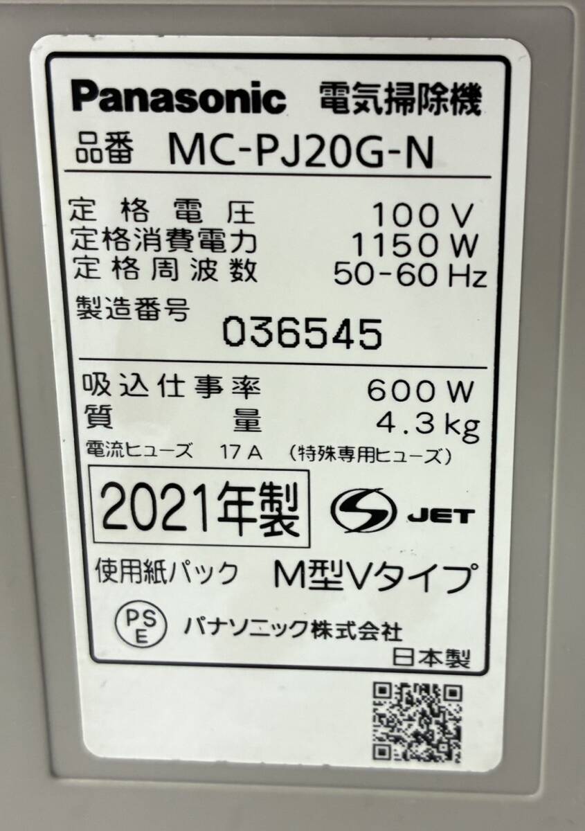 | パナソニック 紙パック式クリーナーMC-PJ20GM ジャンク品1台 SA-0901 | |||