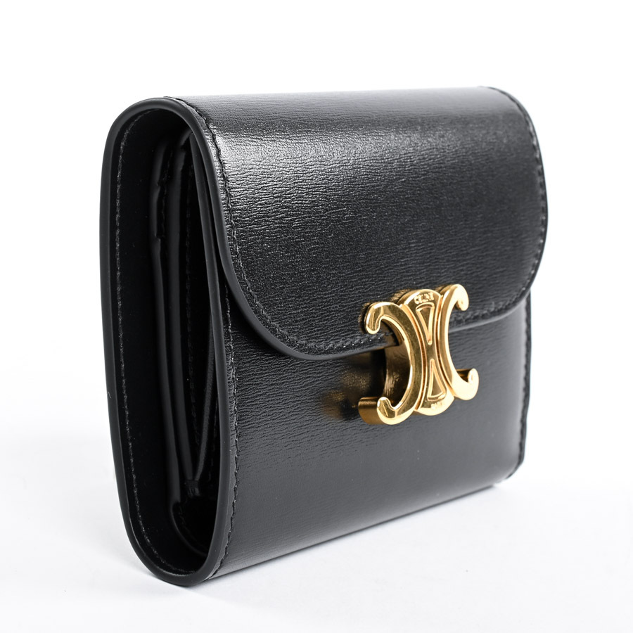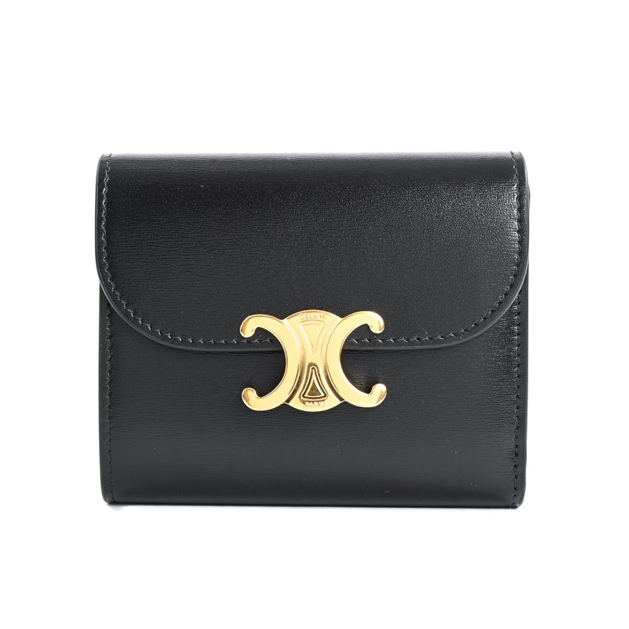 セリーヌ スモールフラップウォレット 二つ折財布 10D783 ブラック レディース 中古SA品