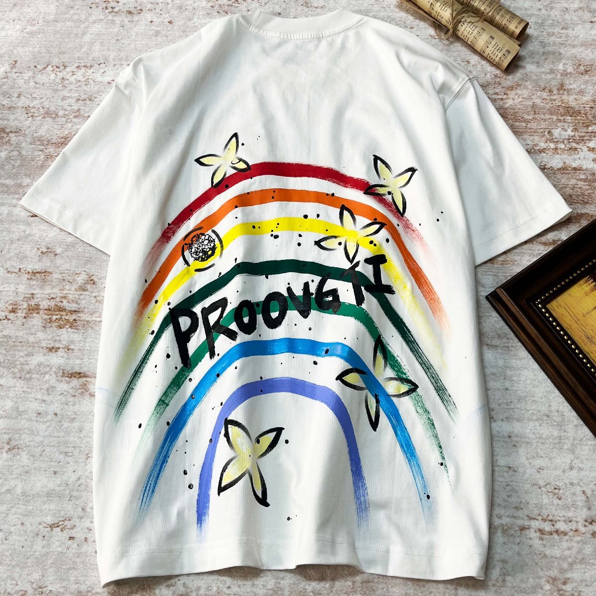 半袖Tシャツ ロンドン製造 コットン100% 通気 ソフト 快適 人気 丸首 レインボー柄 可愛い カジュアル スウェット トップス 日常着 SIZE:L