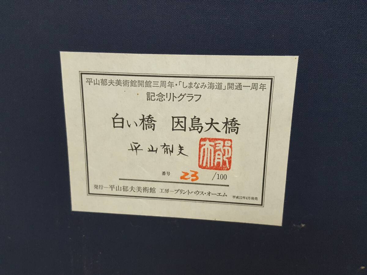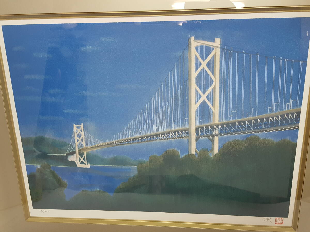 ※佐川急便の場合、離島など別途中継手数料がかかる地域が御座います。 その場合はお振込みを追加でお願いする場合が御座います事、 事前にご了承の程、宜しくお願い致します。 [商品名] 1円スタート 【真作】平山郁夫「白い橋 因島大橋」額装リトグラフ [サイズ] 額約70×85×4.5cm 絵約47×63cm [素材] 木製額×アクリル板 [エディションナンバー] 23/100 [状態] アクリル額の所々にキズ、 額のフチにキズと汚れ箇所が御座いますが、 その他は殆ど傷み無い美品です。
