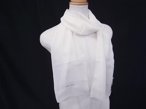 ■美品■ GIORGIO ARMANI ジョルジオアルマーニ シルク100% ストール ショール レディース アイボリー系 DI6677