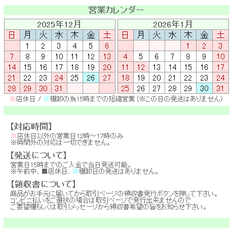 | 店休日は下記リンクにてご確認下さい 「営業カレンダー」 「自己紹介欄」 |