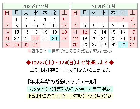 | 2021年10月より土曜日の配達休止など郵便物のサービスが変更になりました。 普通郵便は土日祝を除いて発送からお届けまで3日以上かかります。 |