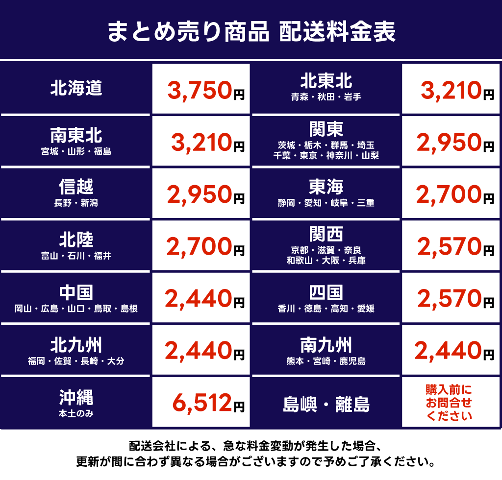| 送料落札者様ご負担 地域別送料表をご確認ください。 ※一部商品はコンパクトに圧縮して発送する場合があります。 |