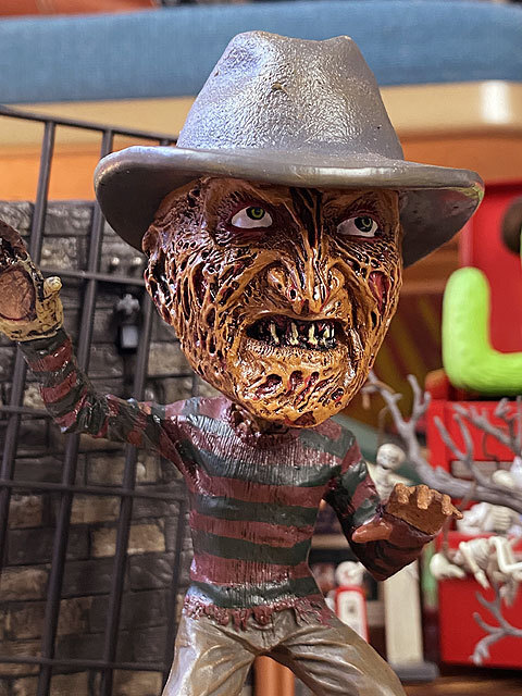 そんな80年代のホラー映画黄金期に誕生したカルト的な人気を誇るキャラ、エルム街の悪夢のフレディ・クルーガーが、映画モノを得意とするNECAからヘッドノッカーでリリースされたってのがコチラ!