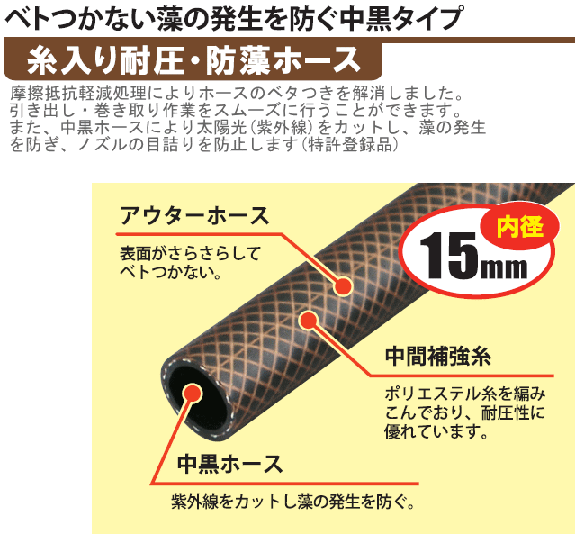 | 落ち着きのあるレトロカラーでお庭を演出 表面さらさらホースで巻き取りやすい ・リール本体に撥水加工で汚れをはじく ・通水したまま水流調節ができる便利な多機能ノズル クイックノズルR ・中黒ホースにより紫外線をカット、藻の発生を抑えノズルの目詰まりを防ぎます。 | |||||||||||||||||||