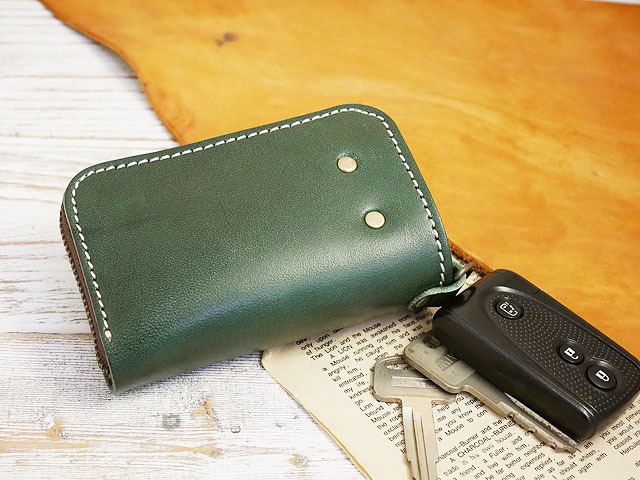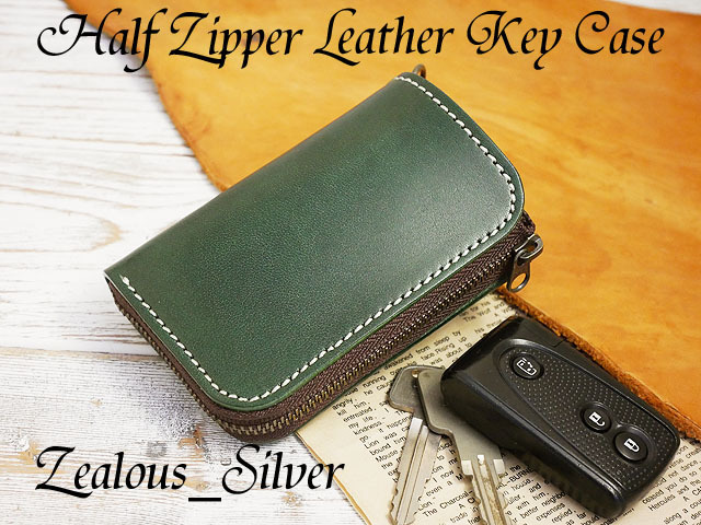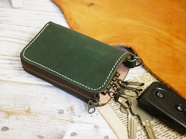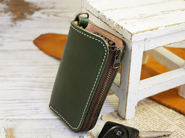 送料無料 ハーフジッパーレザーキーケース lkc28 グリーン