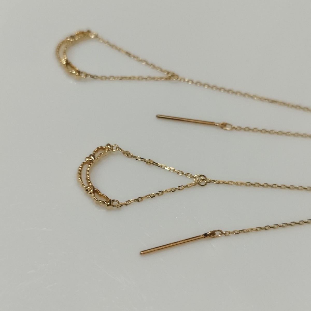 途中の丸カン部分からポストを抜いて、レースのモチーフ部分にチャームを引っ掛けての使用も出来ます。