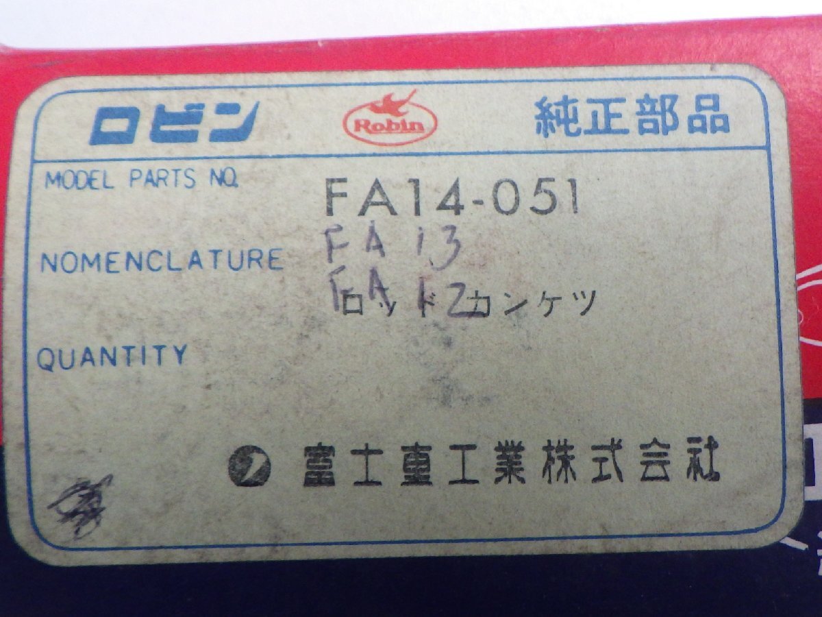 メーカー:富士ロビン 品名:ロッドカンケツ 部品番号:FA14-051 詳細説明 未使用の長期在庫品です。 手書きで「FA13 FA12」と書いてあります。 画像にてご確認ください。 部品番号 「FA14-051」をご確認の上、ご注文ください。 型式違い等で取りつかない場合でもノークレーム・ノーリターンです。 写真掲載品がすべてになります。また、多少のサビ汚れ等がございます。現物確認の上、ご入札をお願い致します。 |