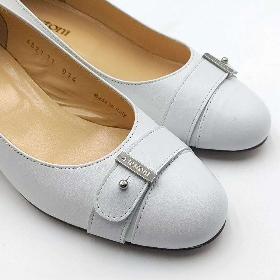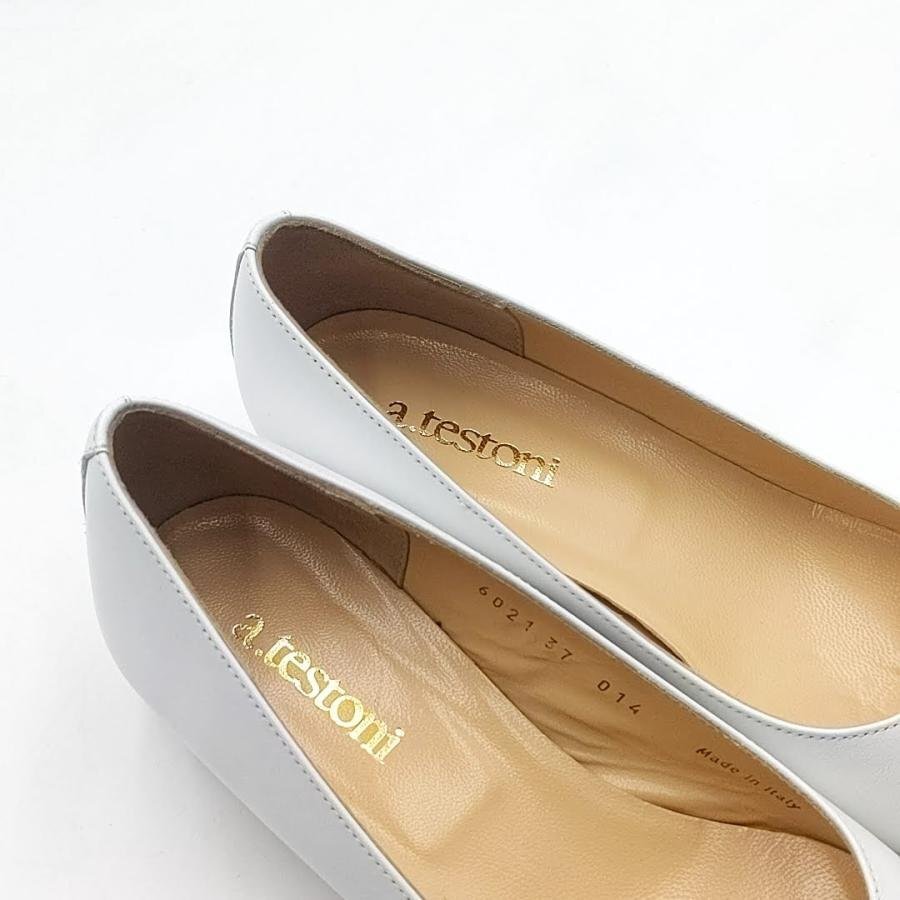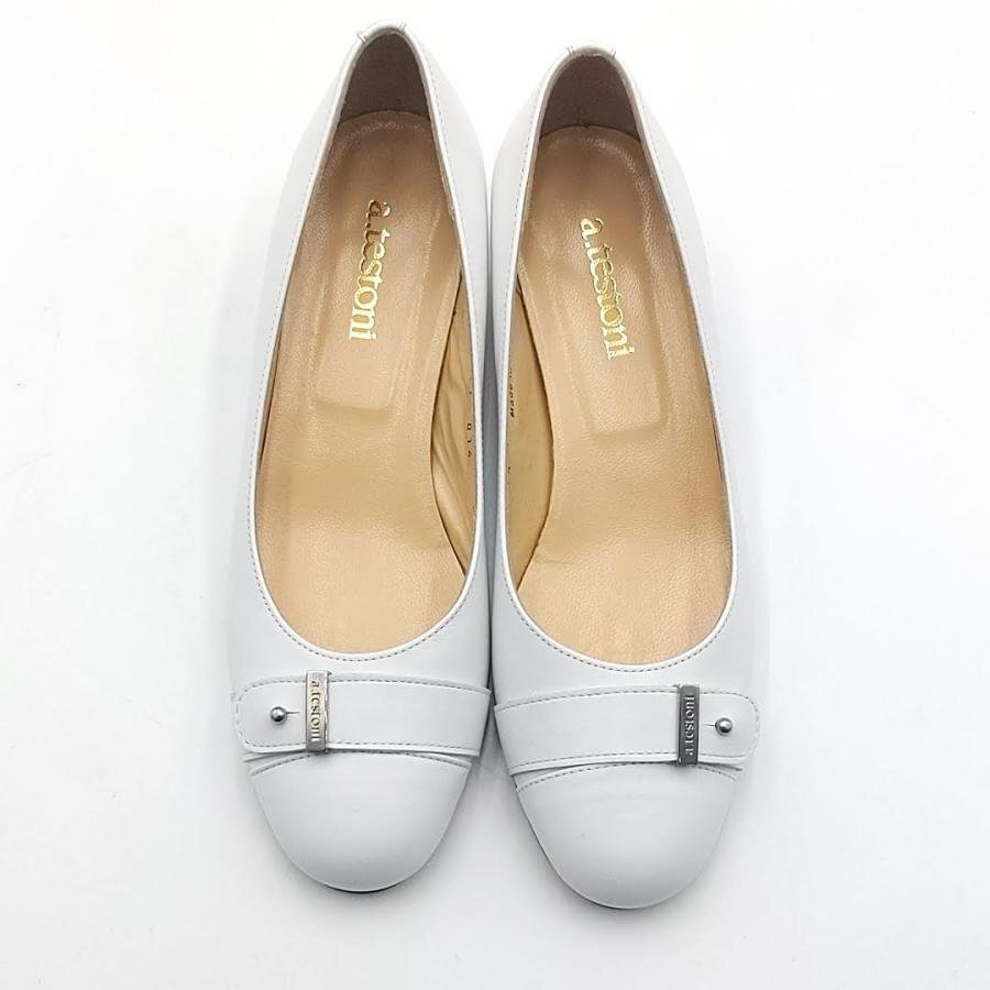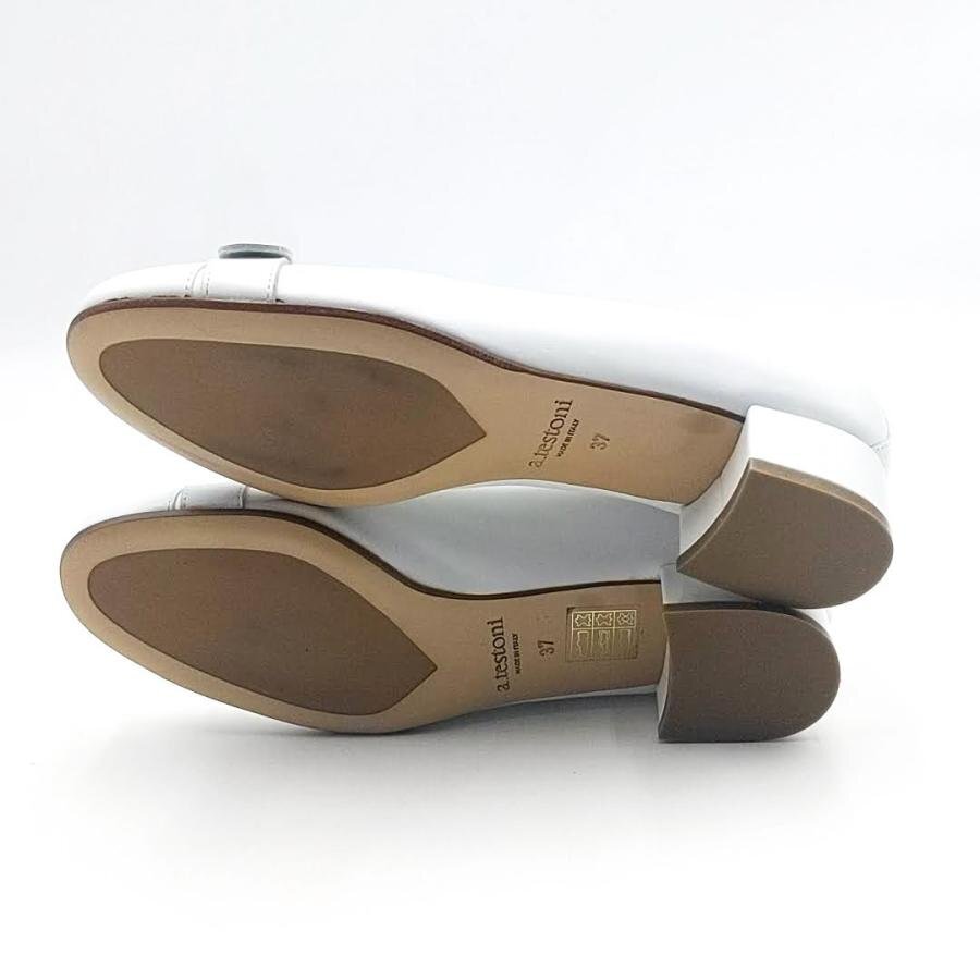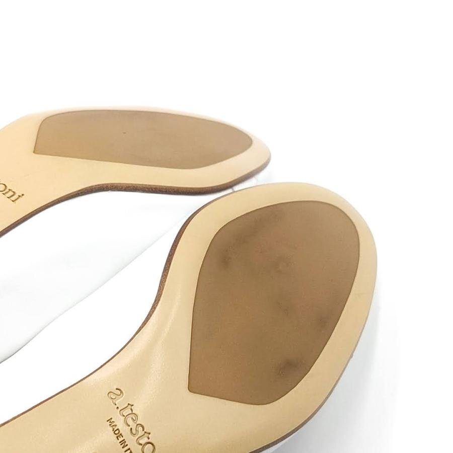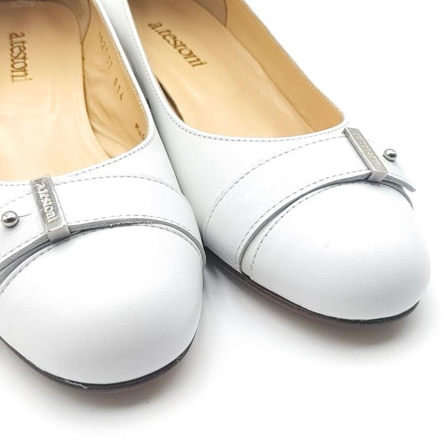 ・送料無料 超美品 ア テストーニ a.testoni パンプス 靴 シューズ レザー 本革 ベルトデザイン 6021 014 F116021 97437FBL 伊製 イタリア製 37 24cm相当 白 ホワイト系 レディース