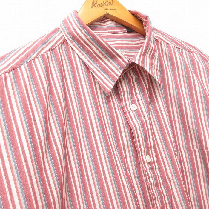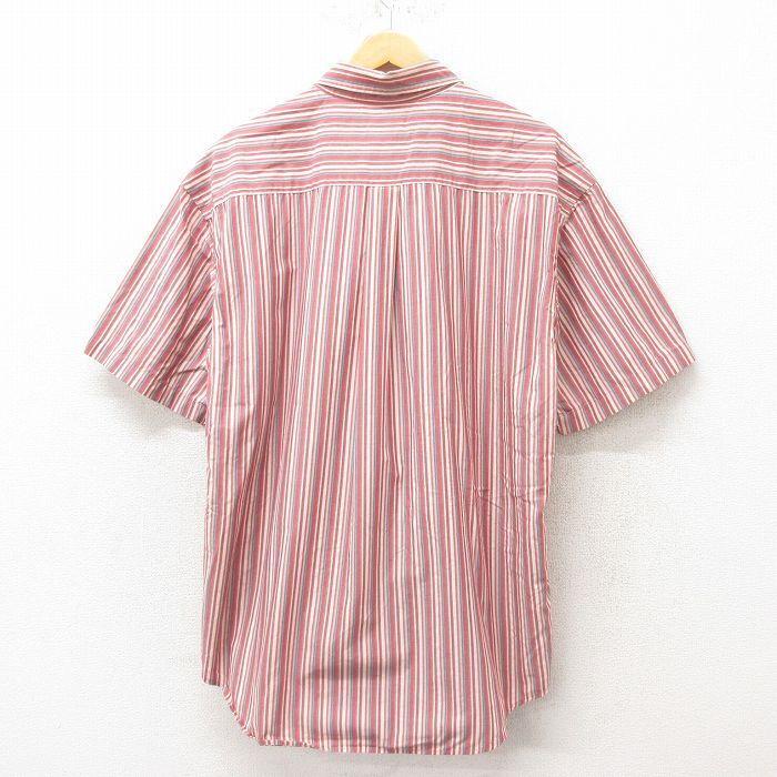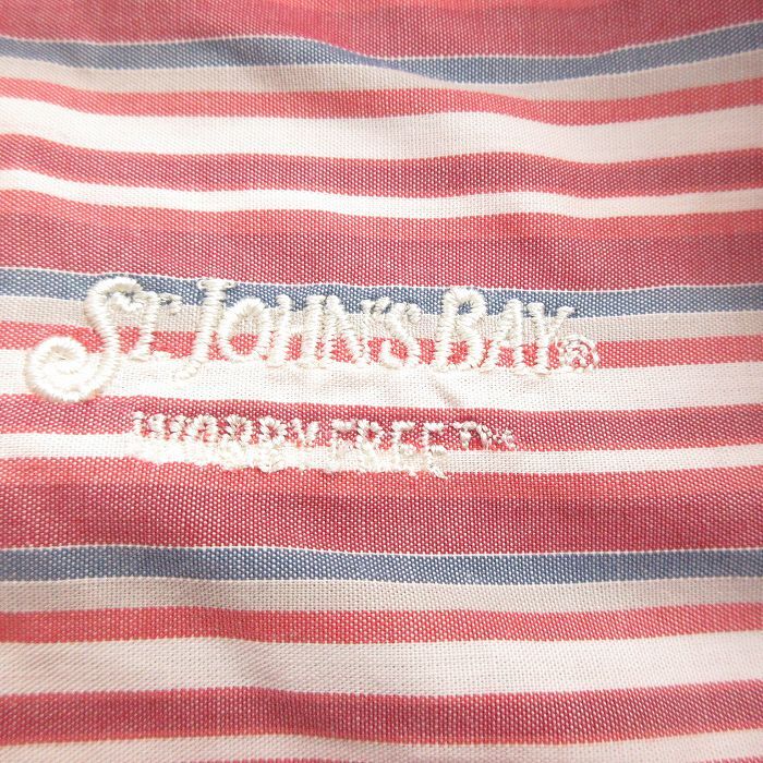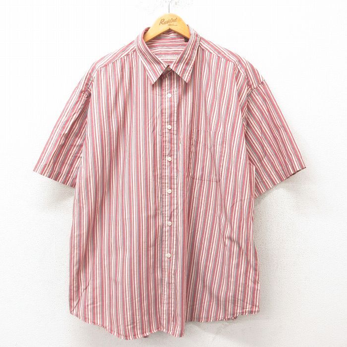 【商品名】 XL★古着 セントジョンズベイ 半袖 シャツ メンズ 大きいサイズ コットン エンジ ストライプ