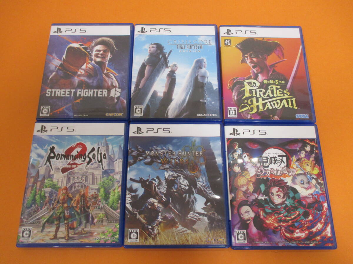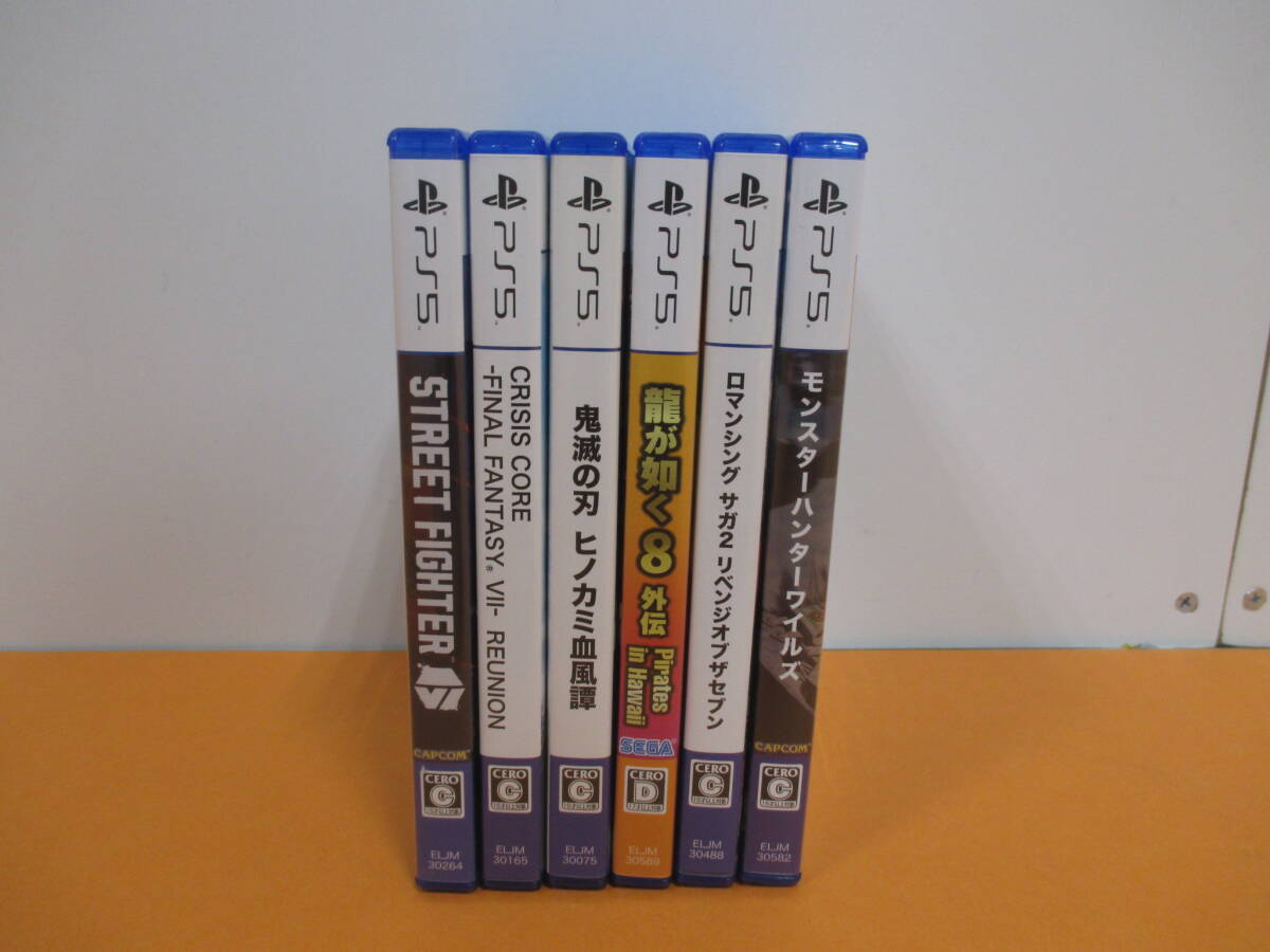 | 058)PS5ソフト 6本 まとめ モンハンワイルズ/鬼滅の刃/ロマシング サガ2/龍が如く8 外伝/クライシスコア FFVII/ストリートファイター6 | |