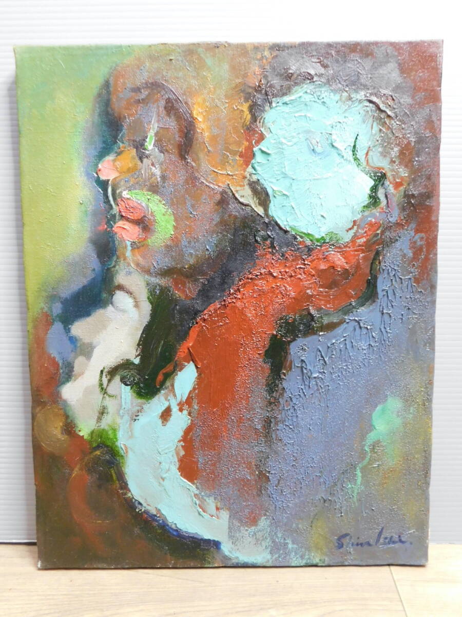 【真作保証】旺玄会会員 石崎伸次 油彩画「サーカスの人」1978年 F6号 額装/M169