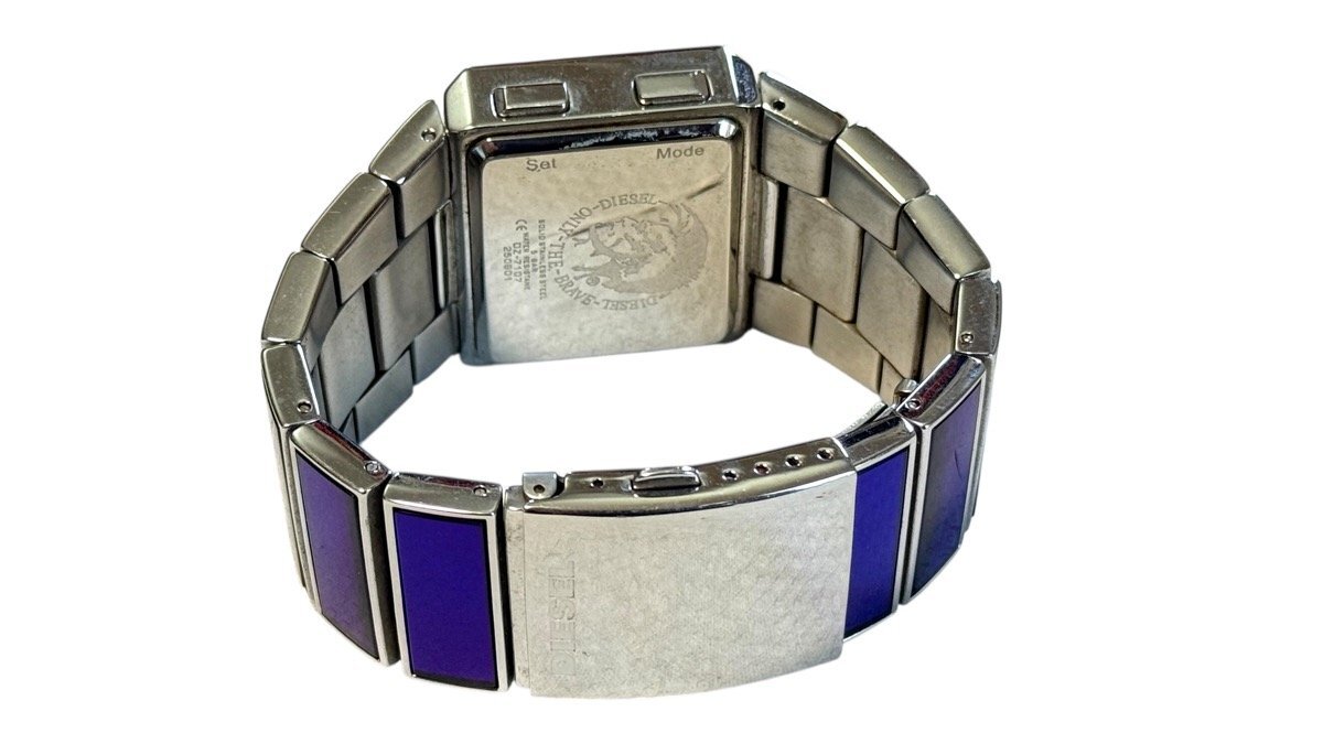 | ご覧いただきありがとうございます! 【ブランド】 ディーセル 【商品名】 腕時計 ディーセルの腕時計です。デジタル表示の文字盤で、格好いいお品です! 【ムーブメント】 クオーツ 【サイズ】 フェイス横3.5㎝ (リユーズは含みません) 内周17cm 【コンディション】 ランク『AB』 補足:動いています。現状でのお渡しです。小傷は多少あるものの、綺麗な印象があります。