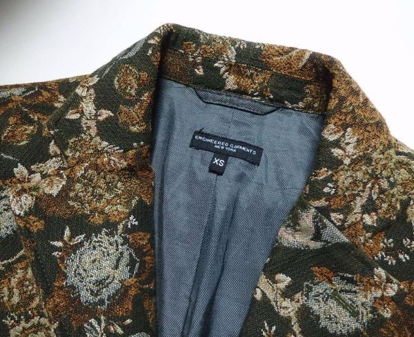 | <商品名> Engineered Garments エンジニアードガーメンツ Baker Jacket Hummingbird Jacquard 総柄 ジャガード ベイカー ジャケット XS <サイズ> XS <詳しい寸法> 肩幅45身幅48.5着丈69.5袖丈55.5(単位:㎝) ぐらいです。 <商品状態> 多少の使用感はございますが良好です。 <商品説明> 2017年秋冬の商品 Baker Jacket - Hummingbird Jacquard 定価61000円+税
