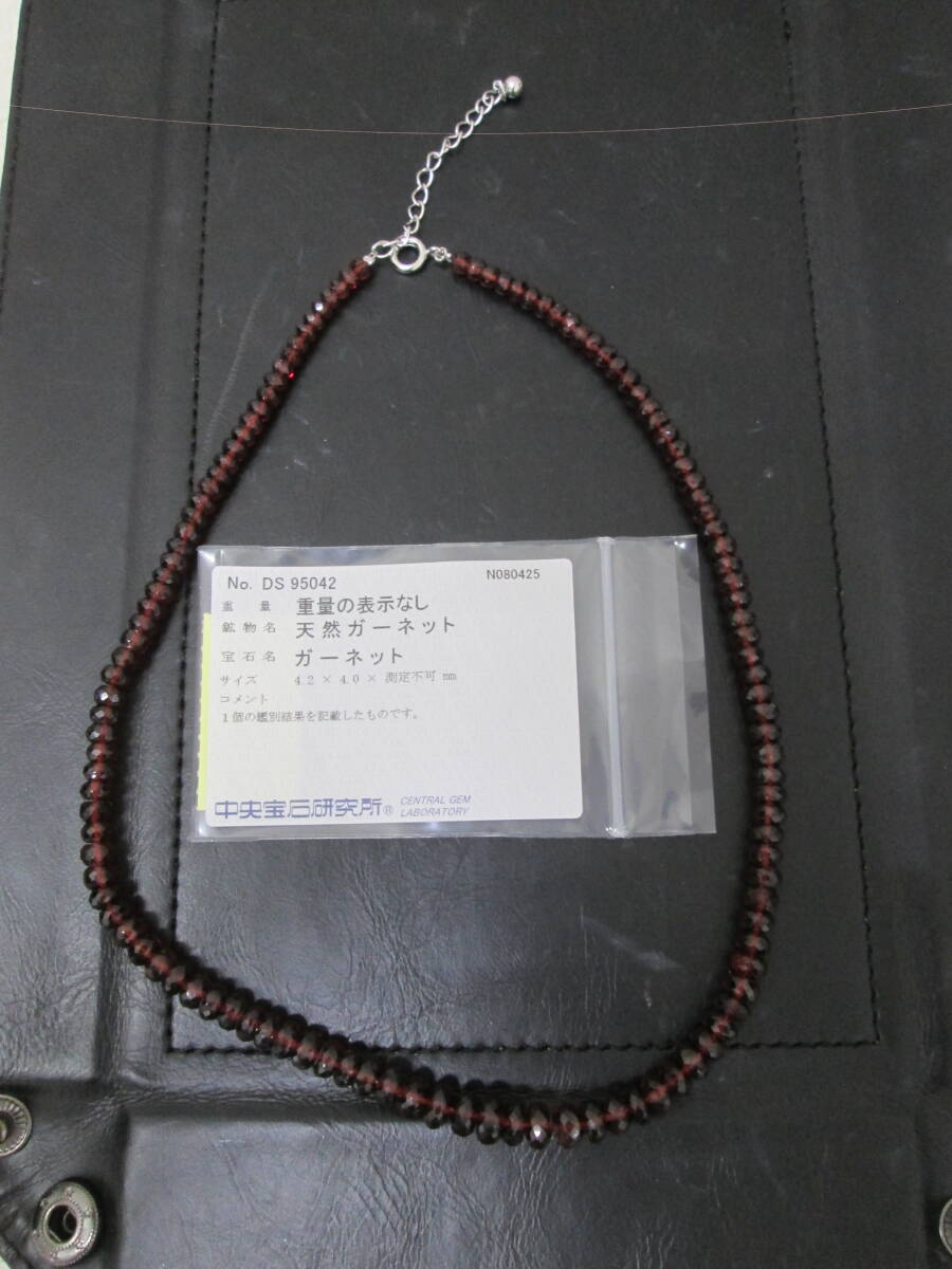 (86)☆ガーネット 天然ガーネット ネックレス 全長約46cm 玉径約4.0~4.2mm 中央宝石研究所 ソーティング付き