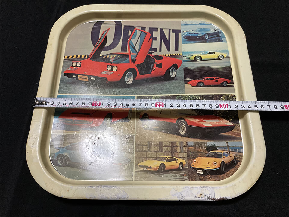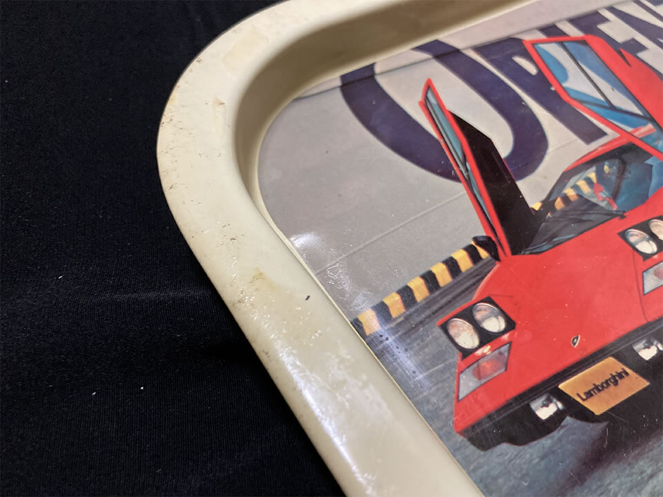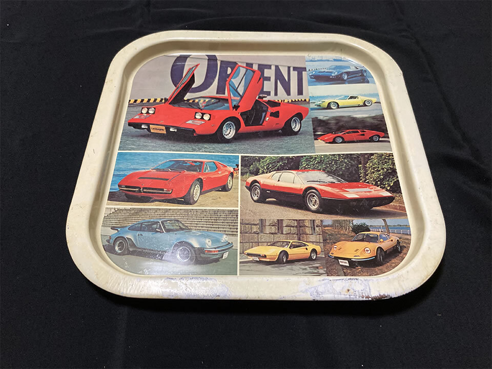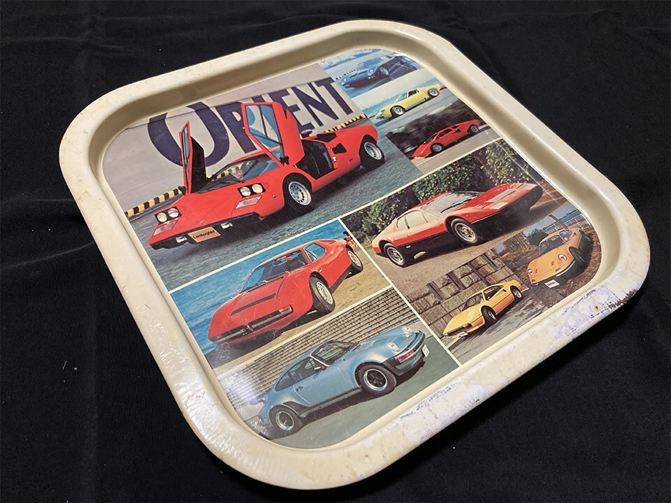 中古 昭和レトロ スーパーカー お盆 トレイ (ランボルギーニ カウンタック、フェラーリ 512BB、ポルシェ911 etc)