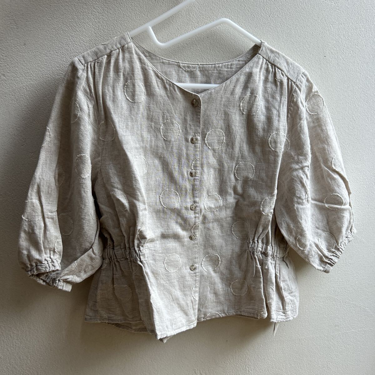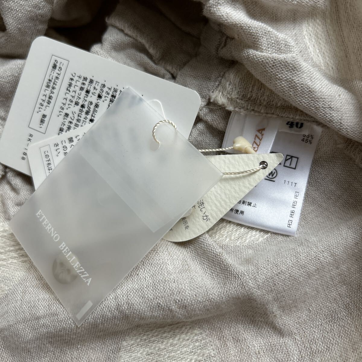 エテルノベレッツァeterno Bellezza」(トップス カットソー 生成りグレーベージュ系 半袖 ドット刺繍 生地パターン