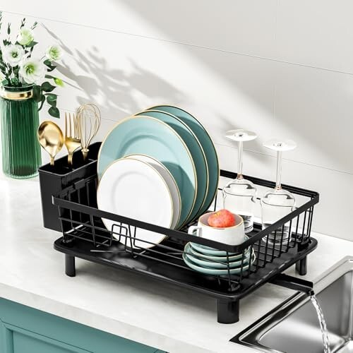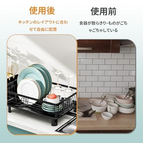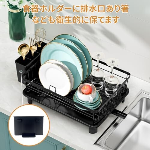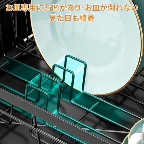 メッシュ構造で多くの食器を収納可能。カトラリーやカップホルダー付きで、キッチンをすっきり整理できます。