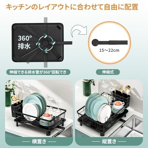 360度回転・長さ調節可能な排水口付き。シンク上に設置しやすく、スムーズに排水できます。