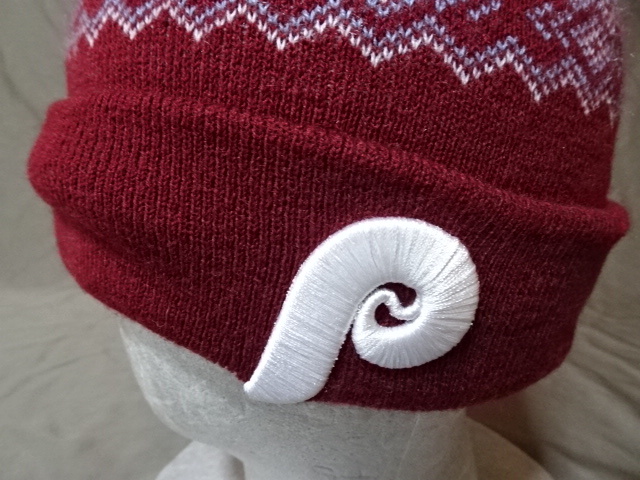 激レア USA購入【NEW ERA】【COOPERSTOWN COLLECTION】 MLB フィリーズ 【Philadelphia Phillies】【P】ロゴ刺繍入りニットCAP 中古良品