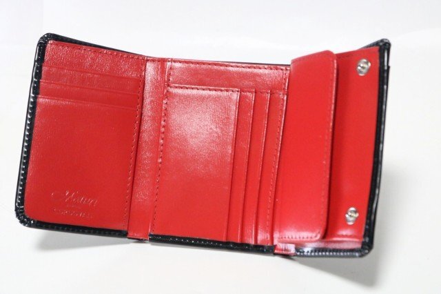 | 圧倒的人気のコードバン三つ折り財布。 古くから高級道具に使用されてきたコードバンは強靭で耐久性が高く、艶があるのが特徴。その艶は抜群の輝きを放ちます。 使い込めば使い込むほど味が出るので、エイジングを楽しみながら長年愛用することができます。 内側は牛革を使用。三つ折り財布ながらも収納たっぷりに仕上げました。 年齢関係なく愛される三つ折り財布です。 ■カラー:外側/ブラック、内側/レッド ■サイズ(約):縦12cm×横9.5cm、マチ3cm ※商品によって多少の誤差あります。予めご了承下さい。 ■素材:外側/馬革(コードバン)、内側/牛革 ■仕様:Wスナップボタン開閉、カードポケット×10、札入れ×1、小銭入れ×1 ■付属品:Maturi専用BOX ■新品未使用 | |