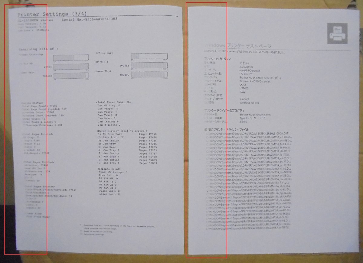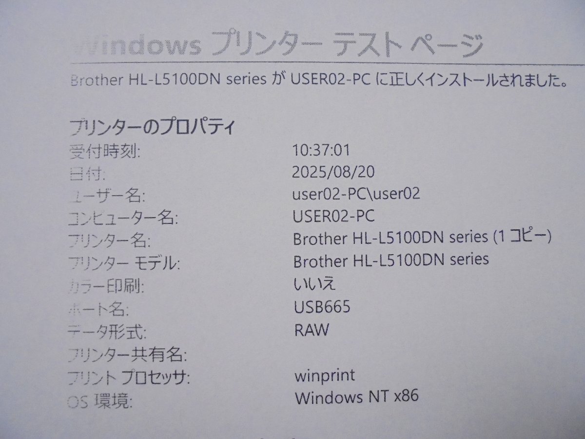 標準用紙トレイ、多目的トレイ印刷動作確認済み。 連続印刷動作確認済み。 自動両面印刷動作確認済み。 USB、LAN動作確認済み。 |