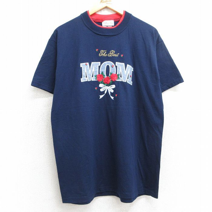 【商品名】 L★古着 半袖 ビンテージ Tシャツ メンズ 90年代 90s MOM バラ クルーネック USA製 紺
