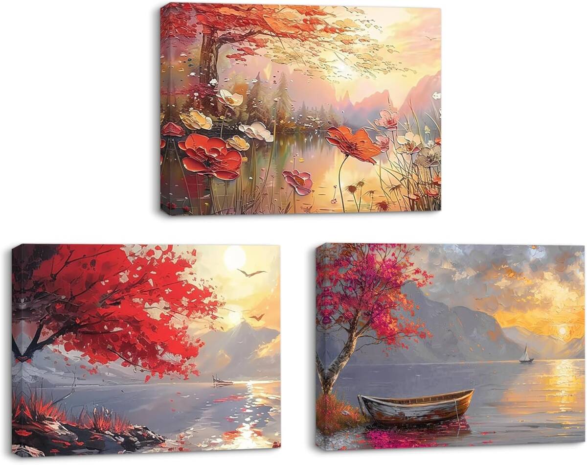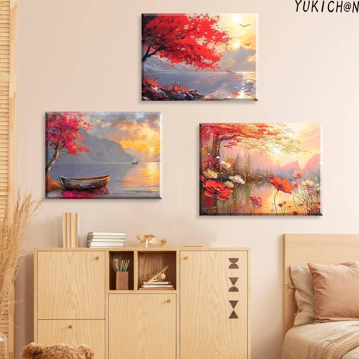 赤い木のキャンバスプリント キャン海の風景 キャンバス プリント キャンバス壁アート 装飾画 絵画 背景の壁画 ウォールアート 3x30×40cm