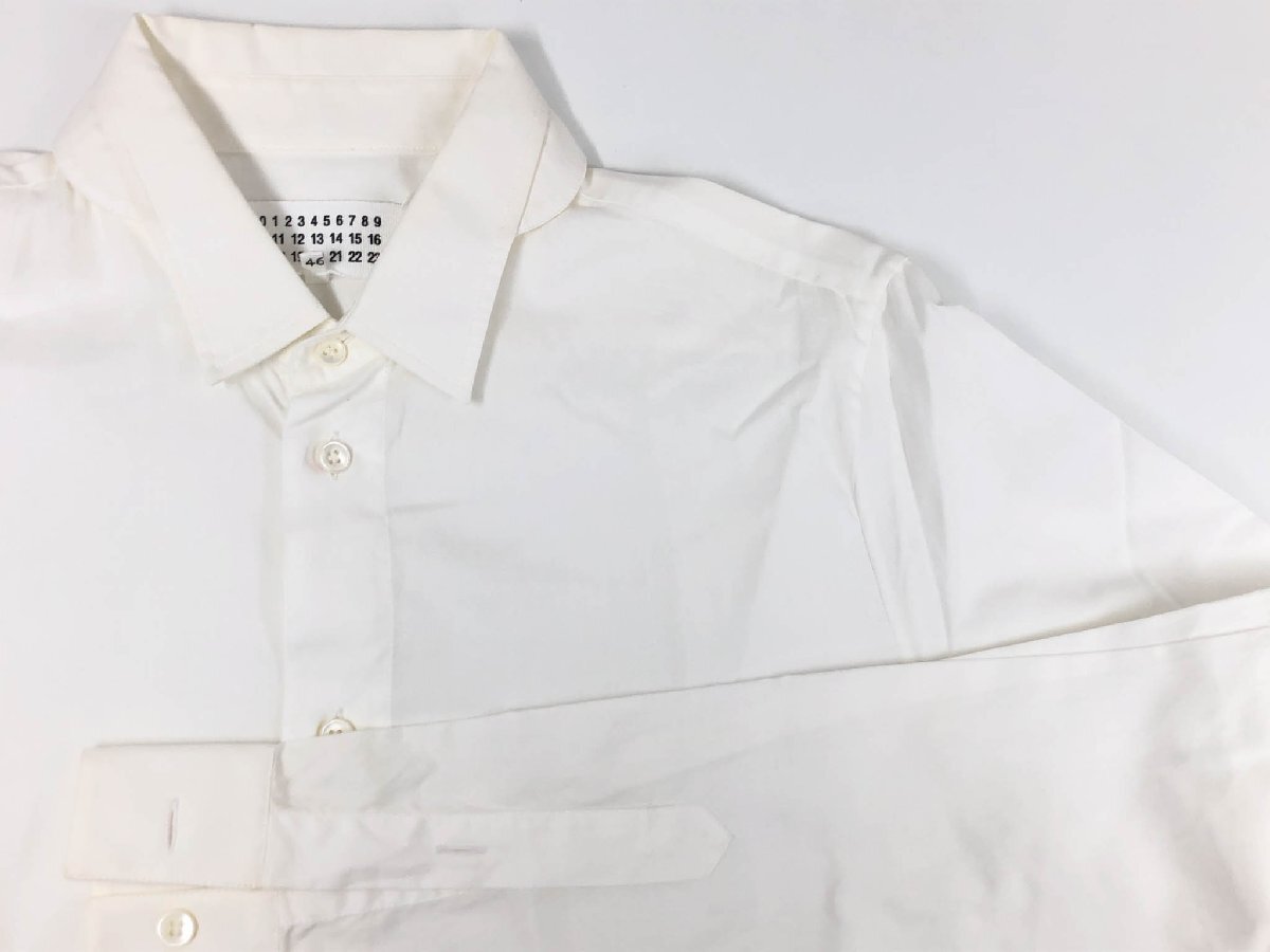 HH【Maison Margiela メゾンマルジェラ】10 S30DL0241 コットン100% セミワイドカラー 長袖シャツ(メンズ) size46 ホワイト ◇35MK5468◇